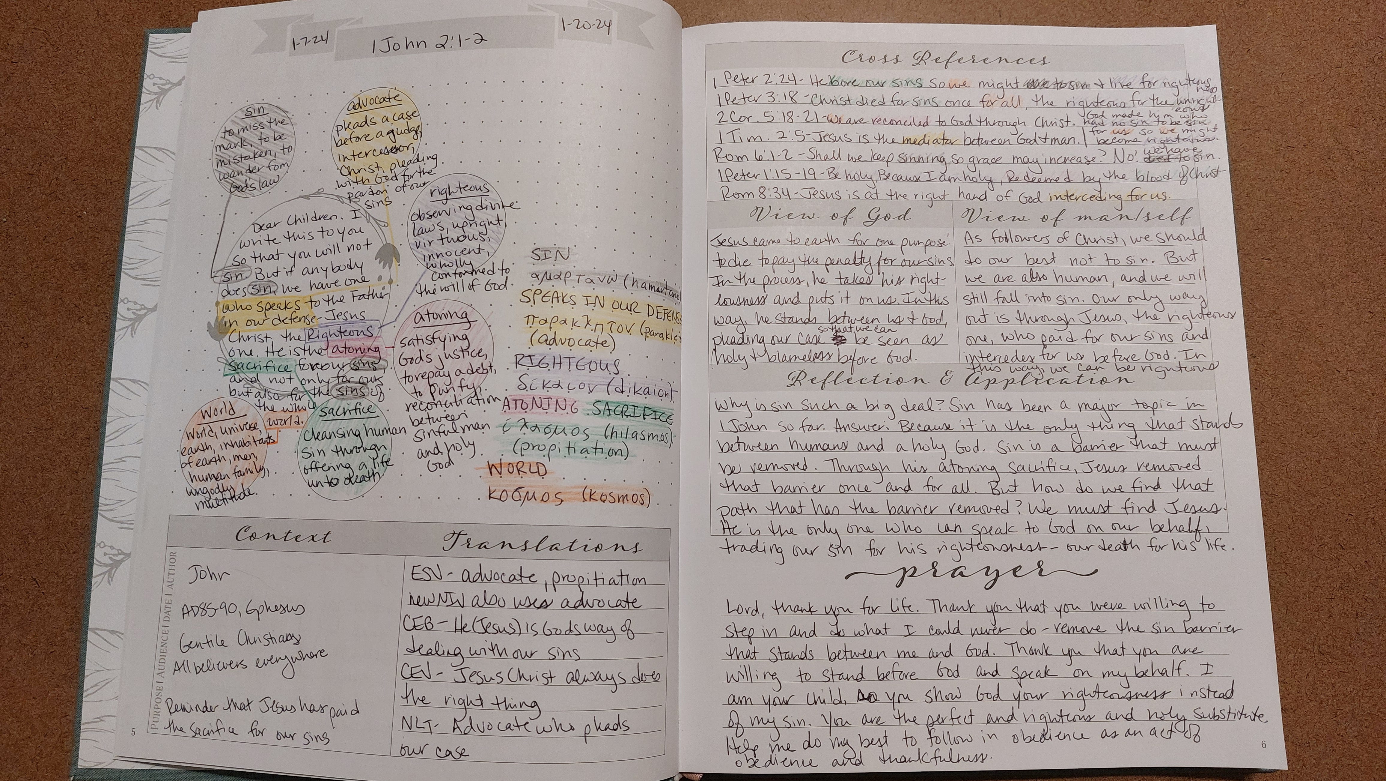One thing that really struck me as I went through this verse was the idea of sin. All three of the verse maps I’ve done in 1 John have sin as a key word. Why is sin such a big deal? It is the only thing that stands between unrighteous humans and a holy and righteous God. Not only has Jesus come to pay the penalty for our sins, but he stands between us and God as a mediator, proclaiming his righteousness rather than our sins. He will do this for anyone who believes in his name.