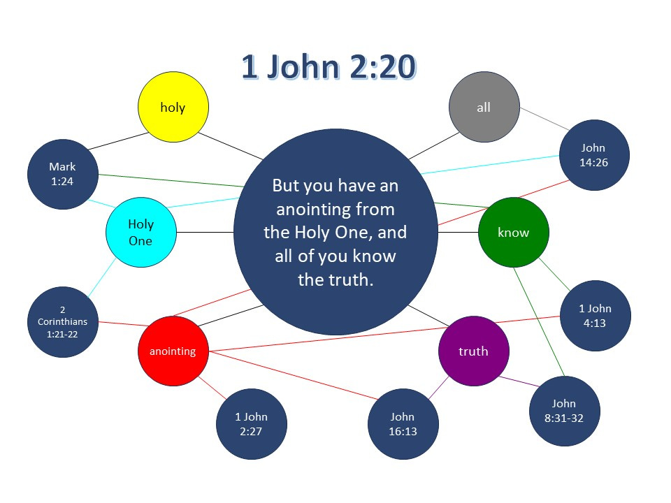 Here is an image of my verse map for 1 John 2:20. I will also type out what I have written for easier reading.