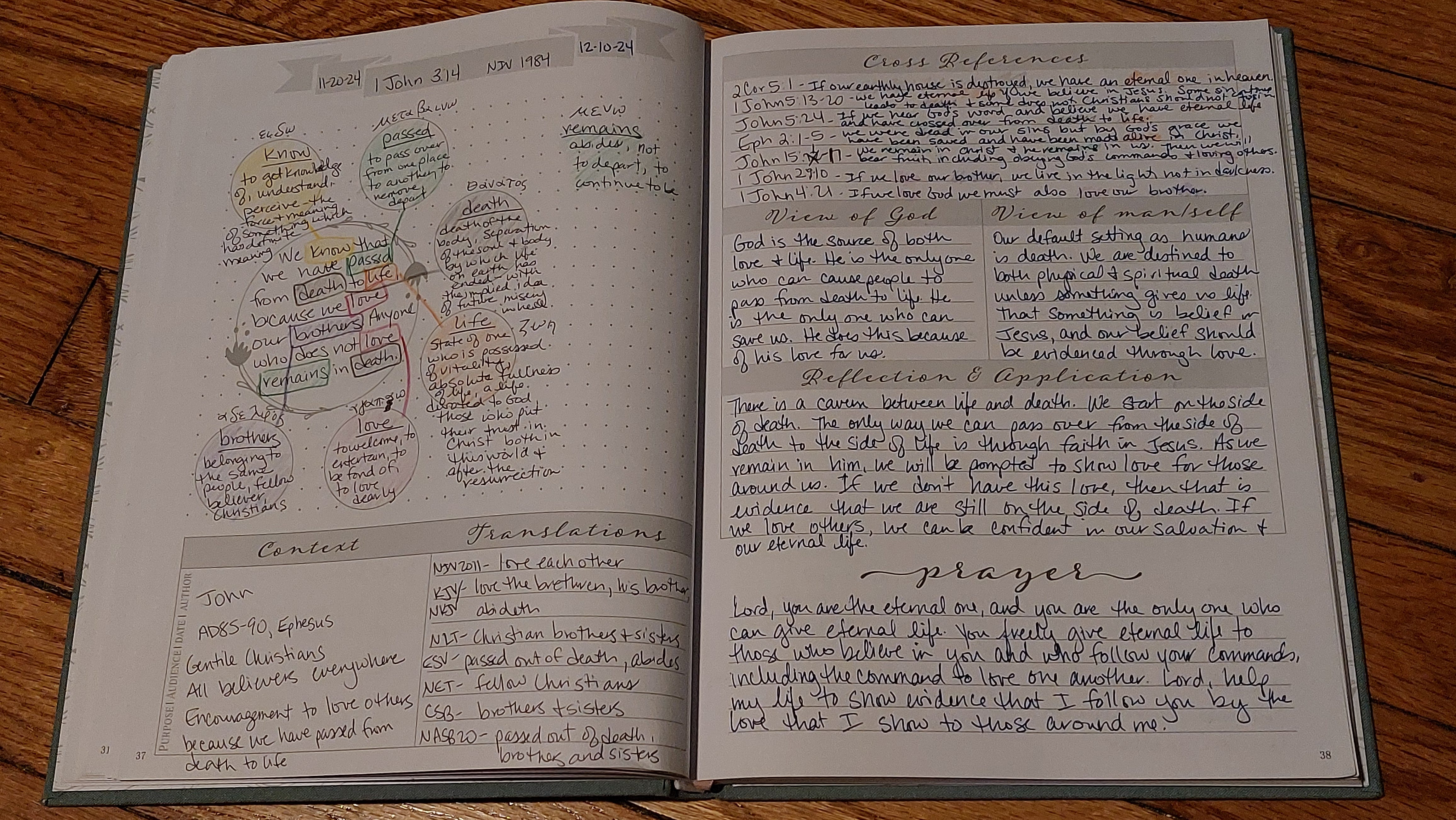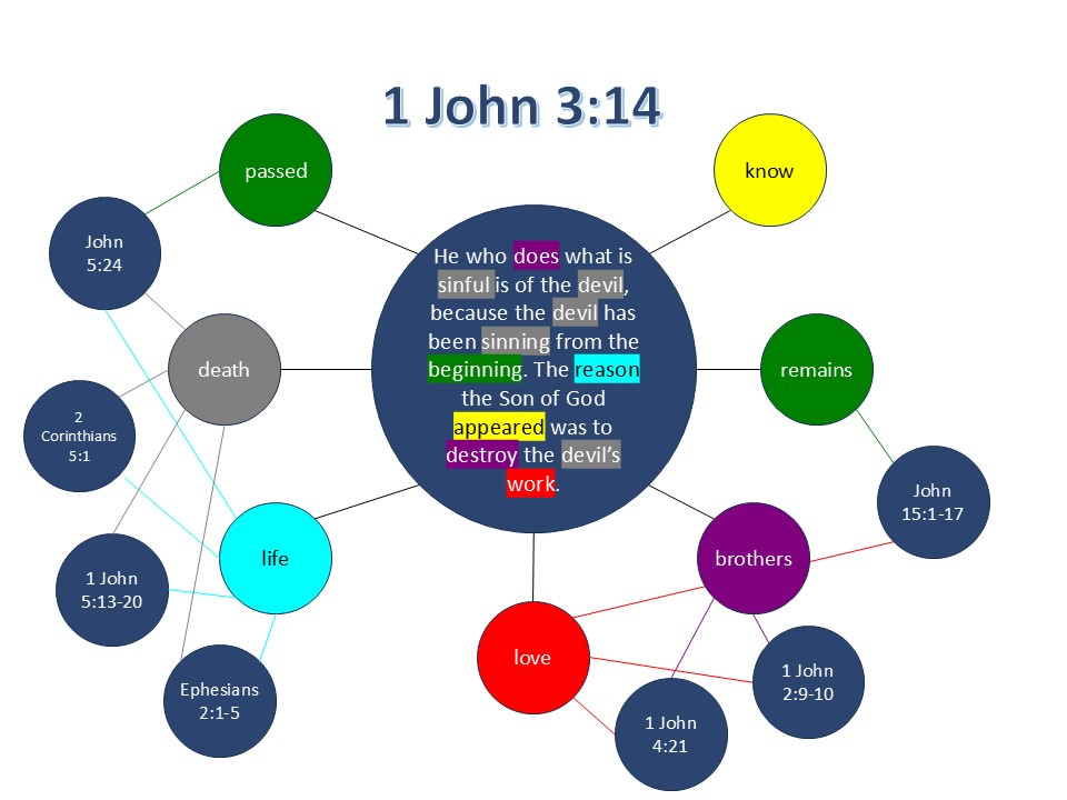 Here is an image of my verse map for 1 John 3:14. I will also type out what I have written for easier reading.