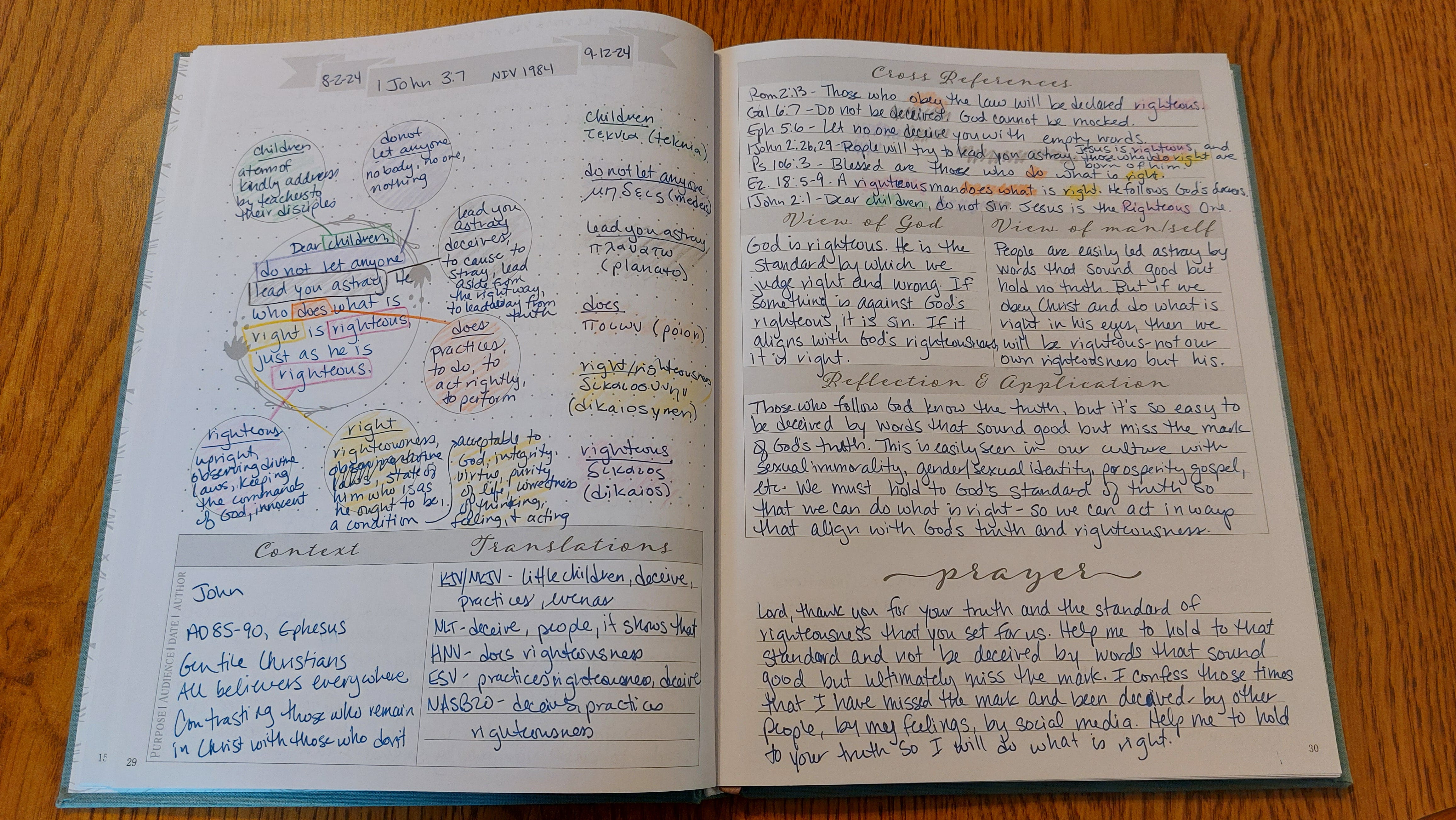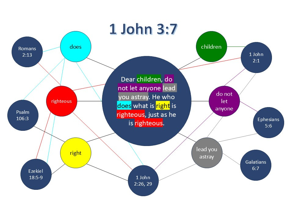 Here is an image of my verse map for 1 John 3:7. I will also type out what I have written for easier reading.